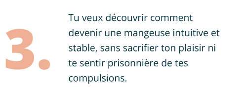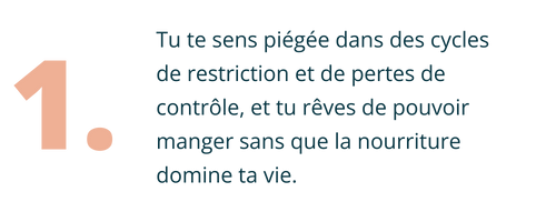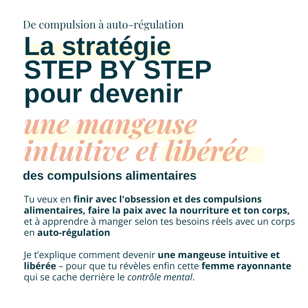 Tu veux en finir avec l'obsession et des compulsions alimentaires, faire la paix avec la nourriture et ton corps, et à apprendre à manger selon tes besoins réels avec un corps en auto-régulation.